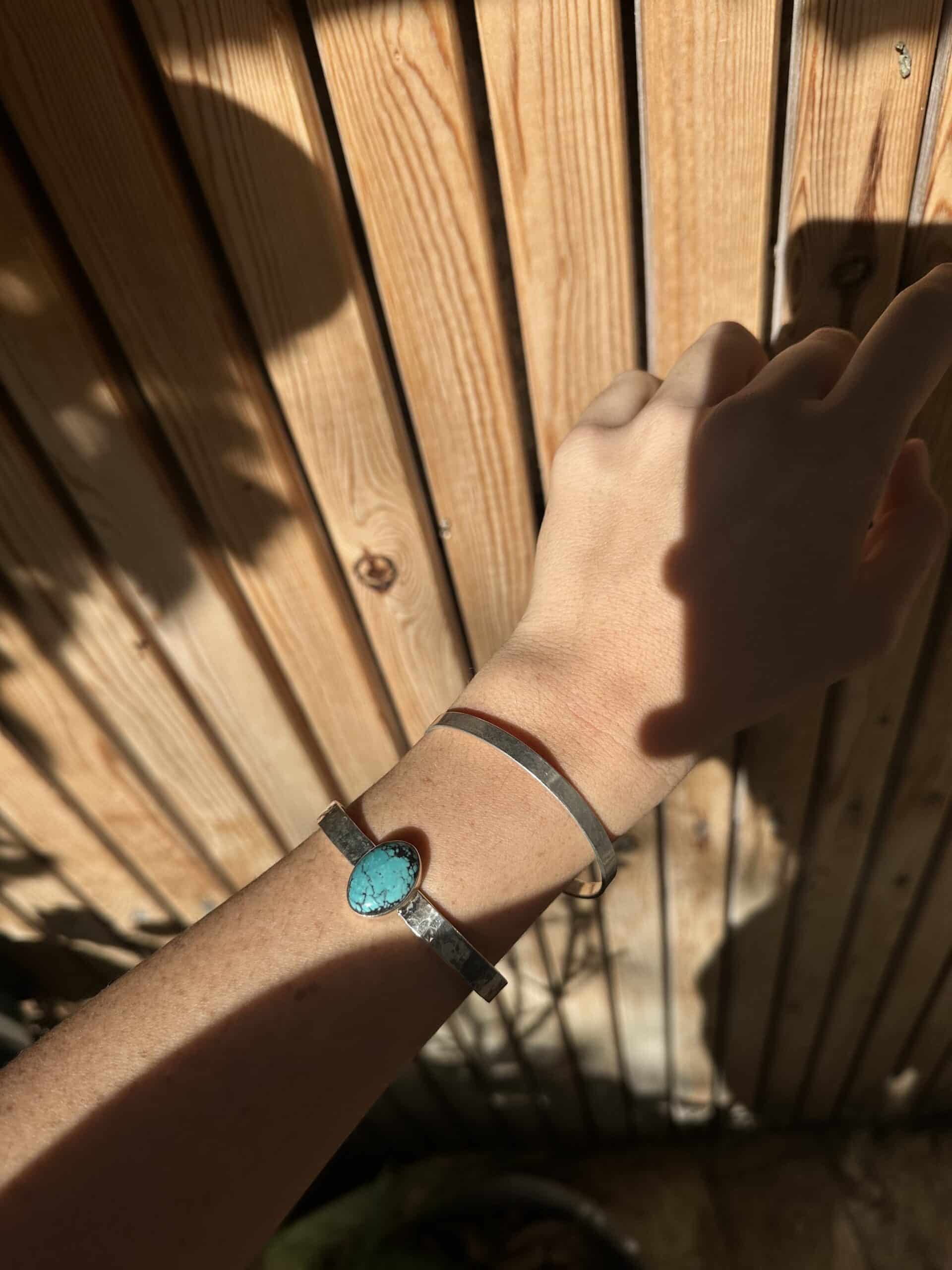 צמיד עם אבן טורקיז, עשוי בעבודת יד מלאה. הצמיד עשוי מכסף 925. הצמיד מגיע בגודל סטנדרטי וניתן להגדלה\ הקטנה על היד.